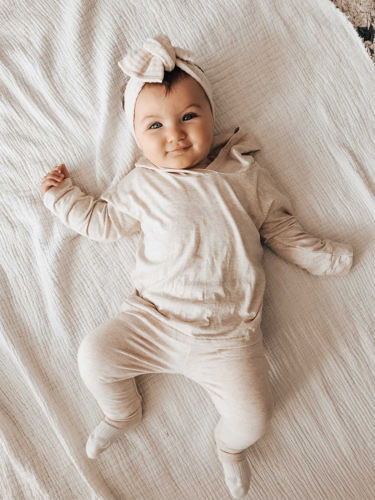 These classic bamboo pocket pants are a lighter weight seasonless staple with a comfortable relaxed fit. Features include a wide elastic waistband, cuffed ankles and two functioning front pockets!