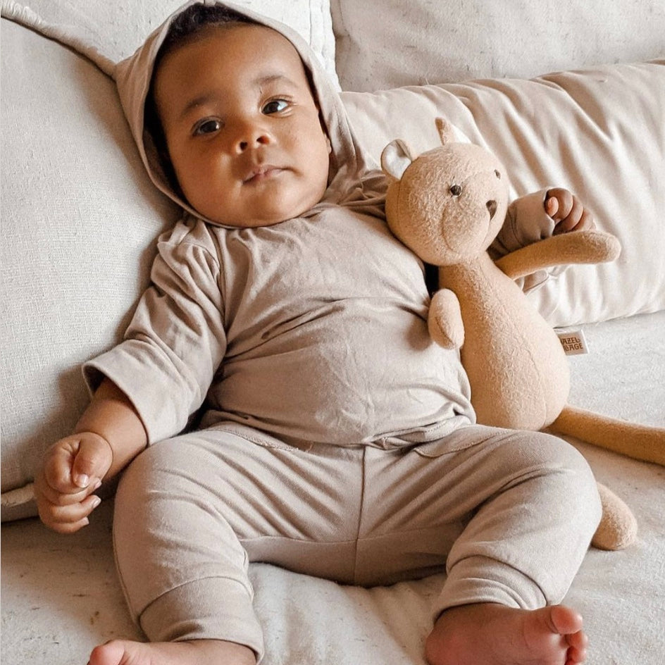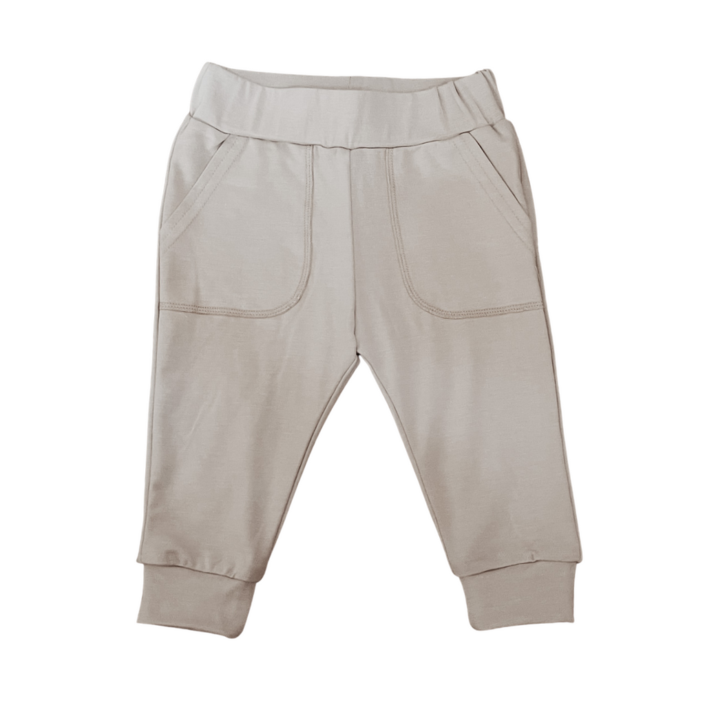 These classic bamboo pocket pants are a lighter weight seasonless staple with a comfortable relaxed fit. Features include a wide elastic waistband, cuffed ankles and two functioning front pockets!