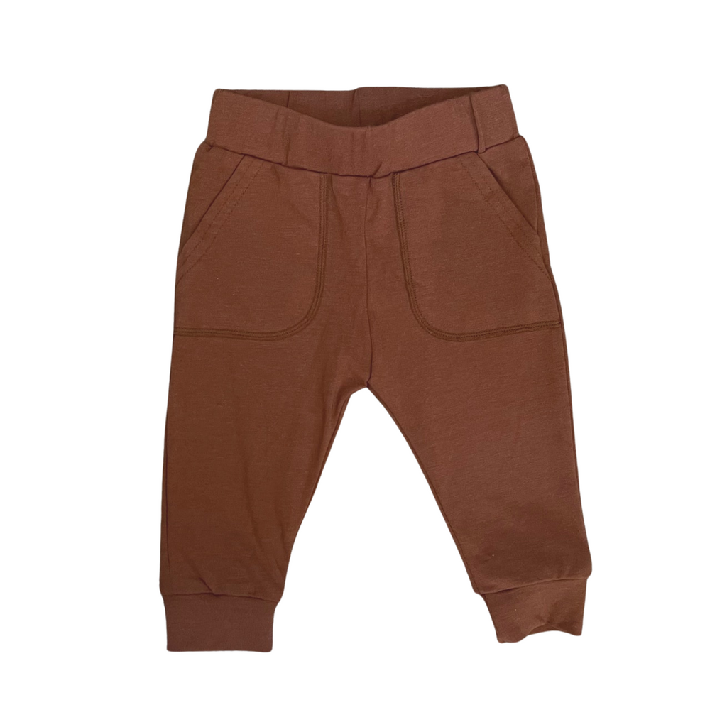 These classic bamboo pocket pants are a lighter weight seasonless staple with a comfortable relaxed fit. Features include a wide elastic waistband, cuffed ankles and two functioning front pockets!