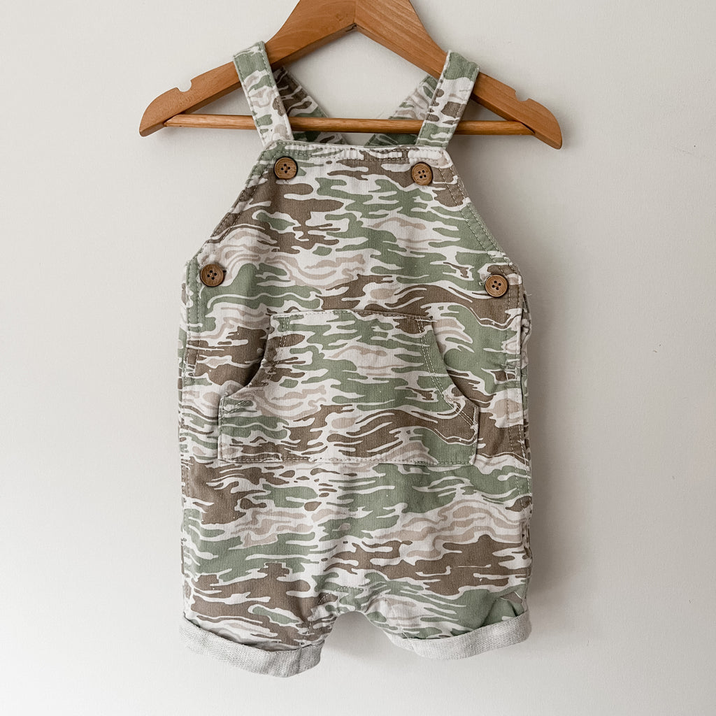 Size 18 months with adjustable straps, snaps through inseam and a kangaroo pocket.