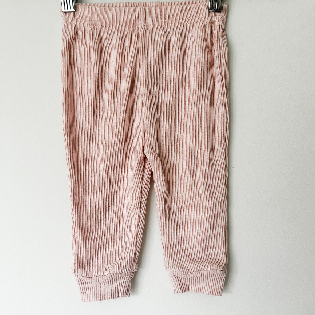 Size 3-5 months. Stretchy ribbed fabric. Set includes onesie, pant and knotted hat.
