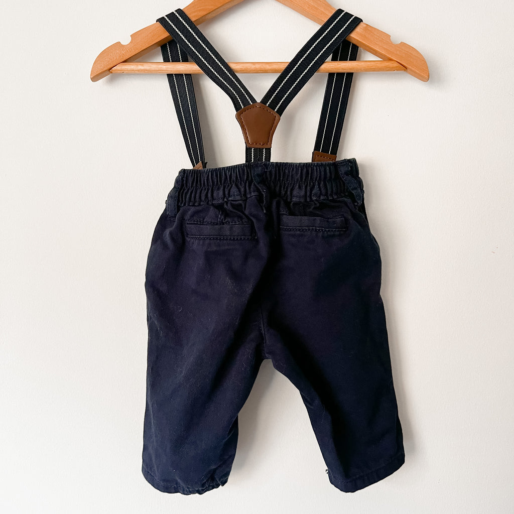 Size 0-3 months with elastic waistband. Can be worn with it without overalls.