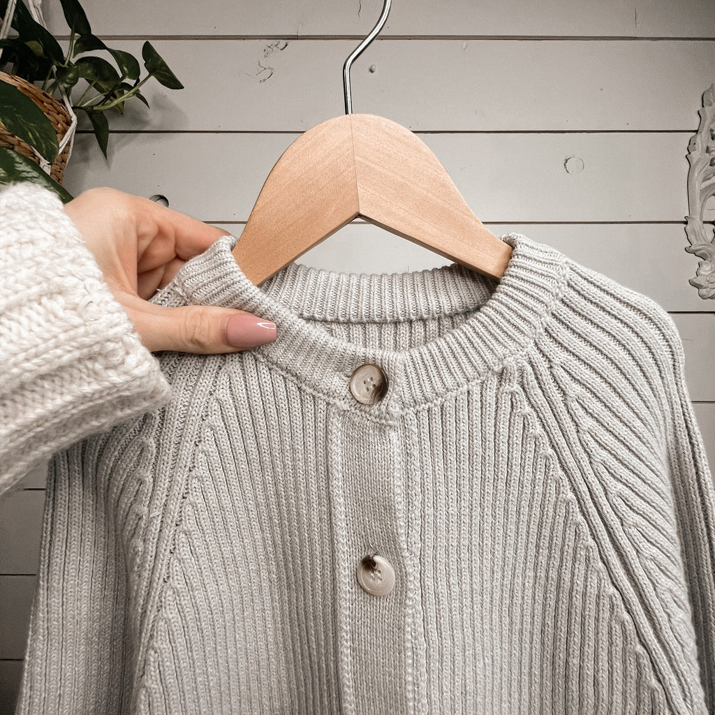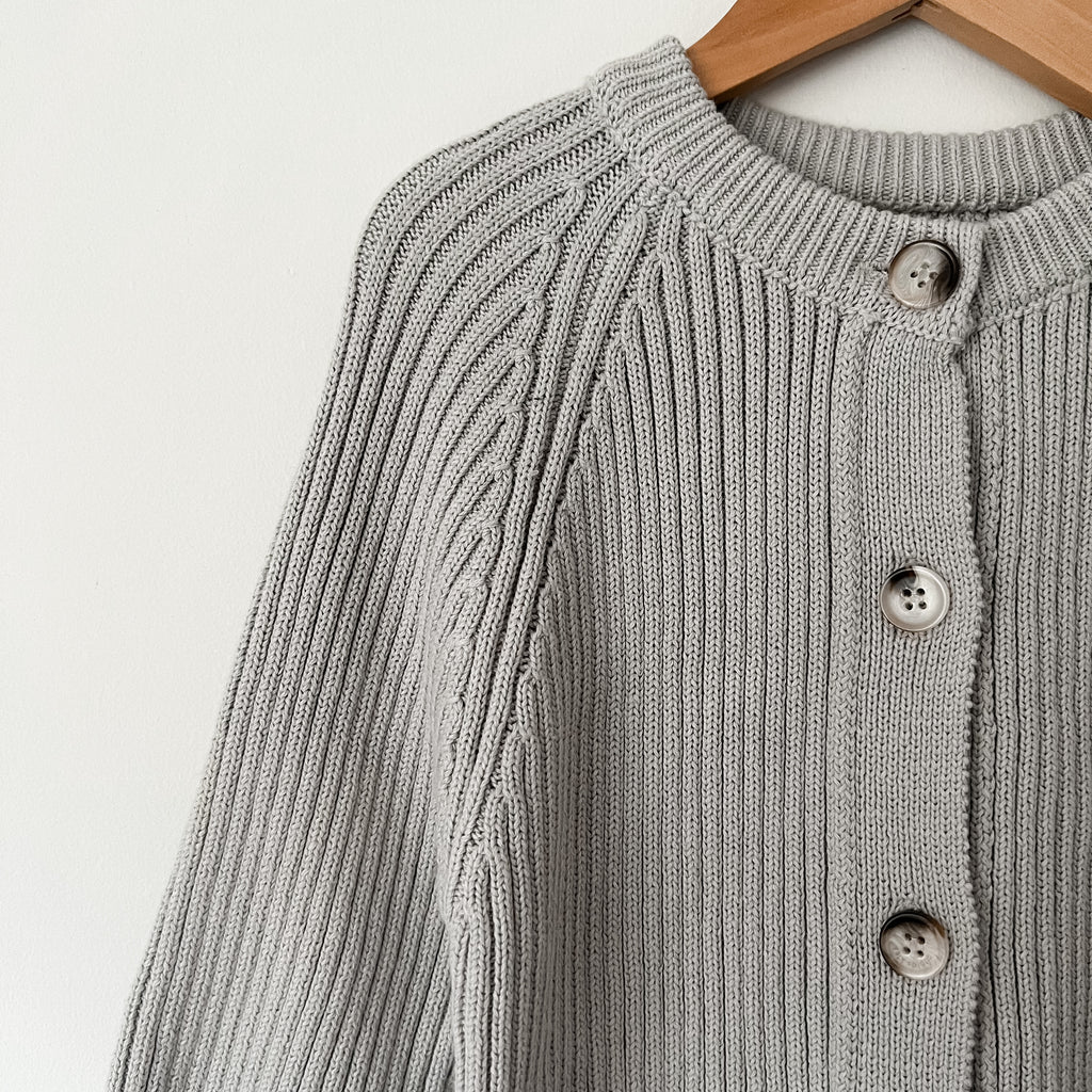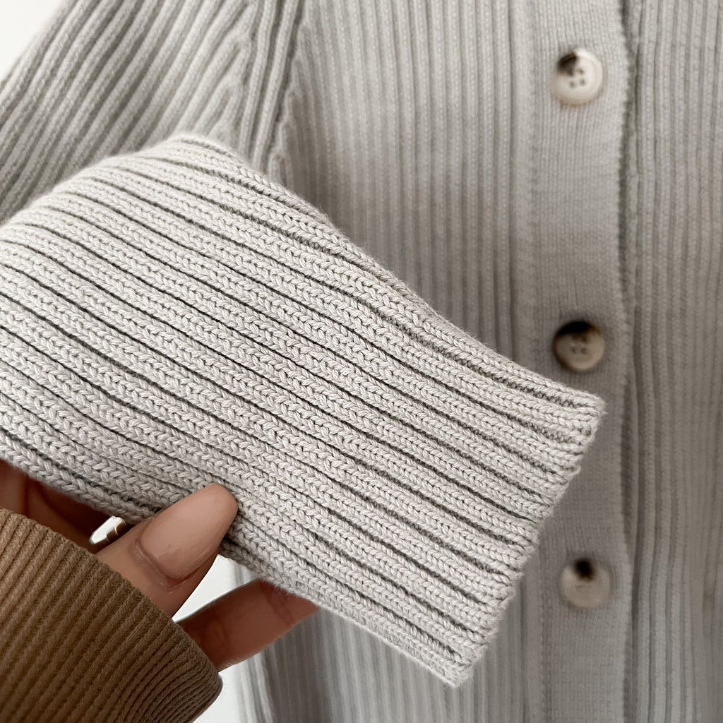 Heavier weight ribbed knit cotton. Full length button up with long sleeves.