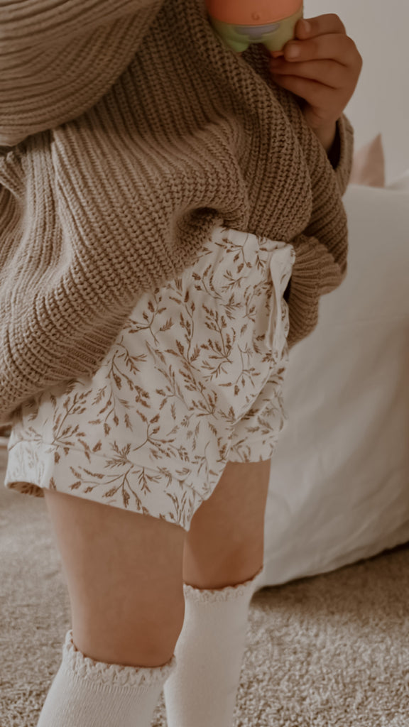 With a non-functioning organic twill tie and a stretchy rib waistband, you’ll want these in every style for your babe before they’re gone!