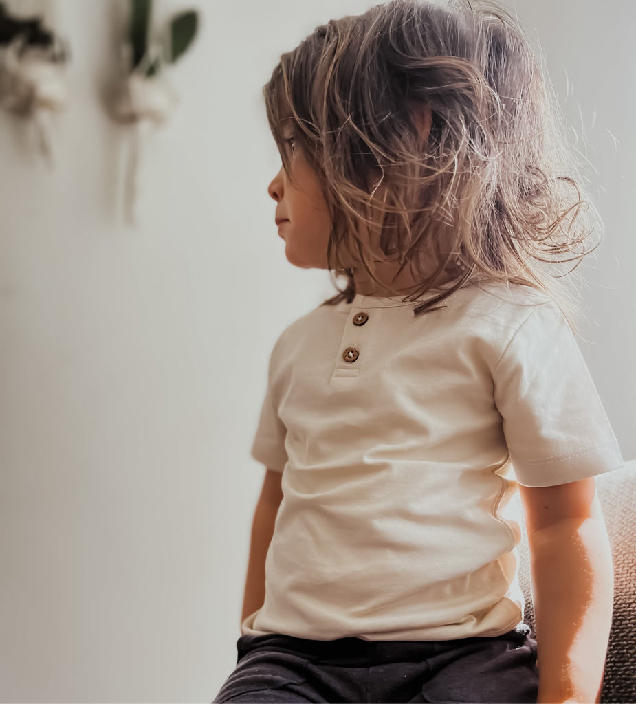 Our Henley tee is the perfect elevated basic for your child's wardrobe. Made from ultra-soft 100% organic cotton, this adorable henley takes comfort to the next level!