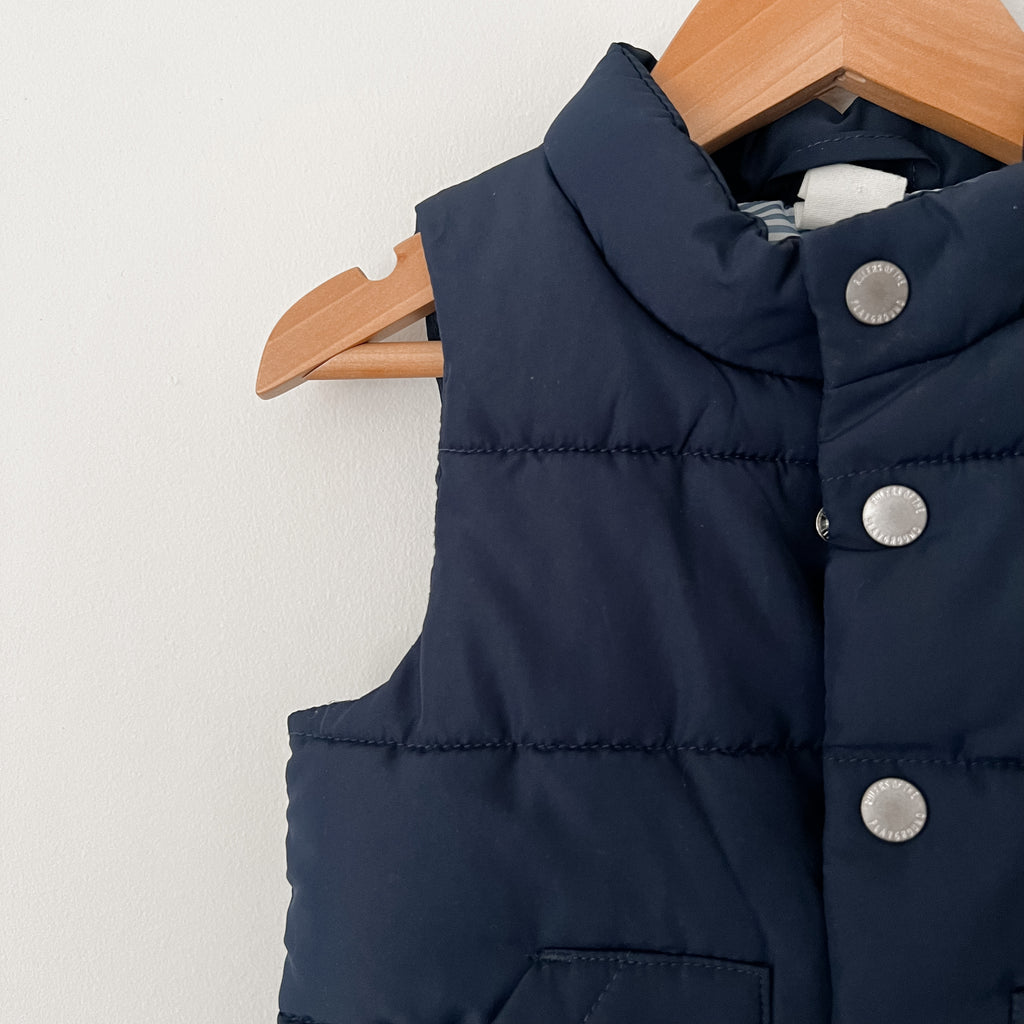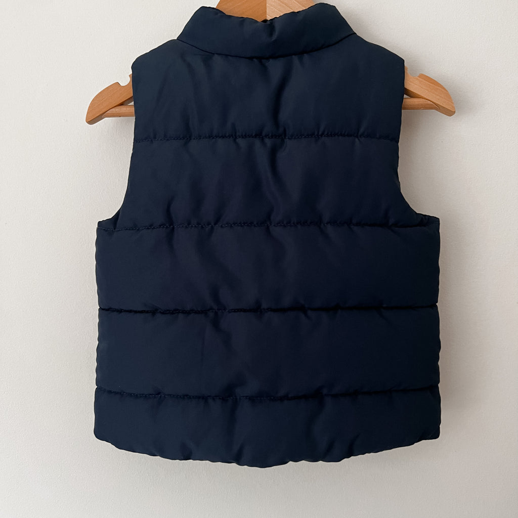 H&M sleeveless puffer vest in navy blue with functioning pockets.