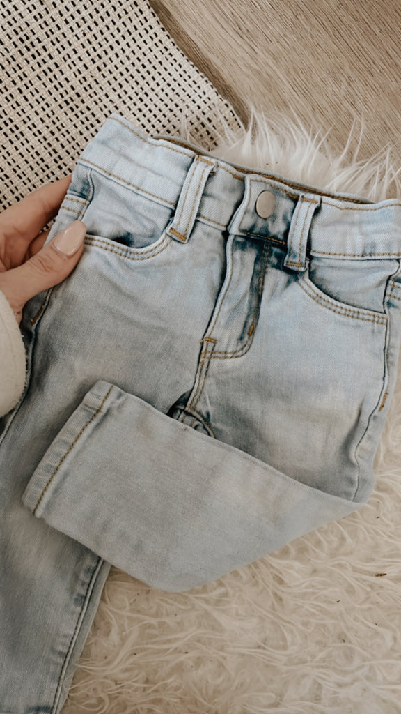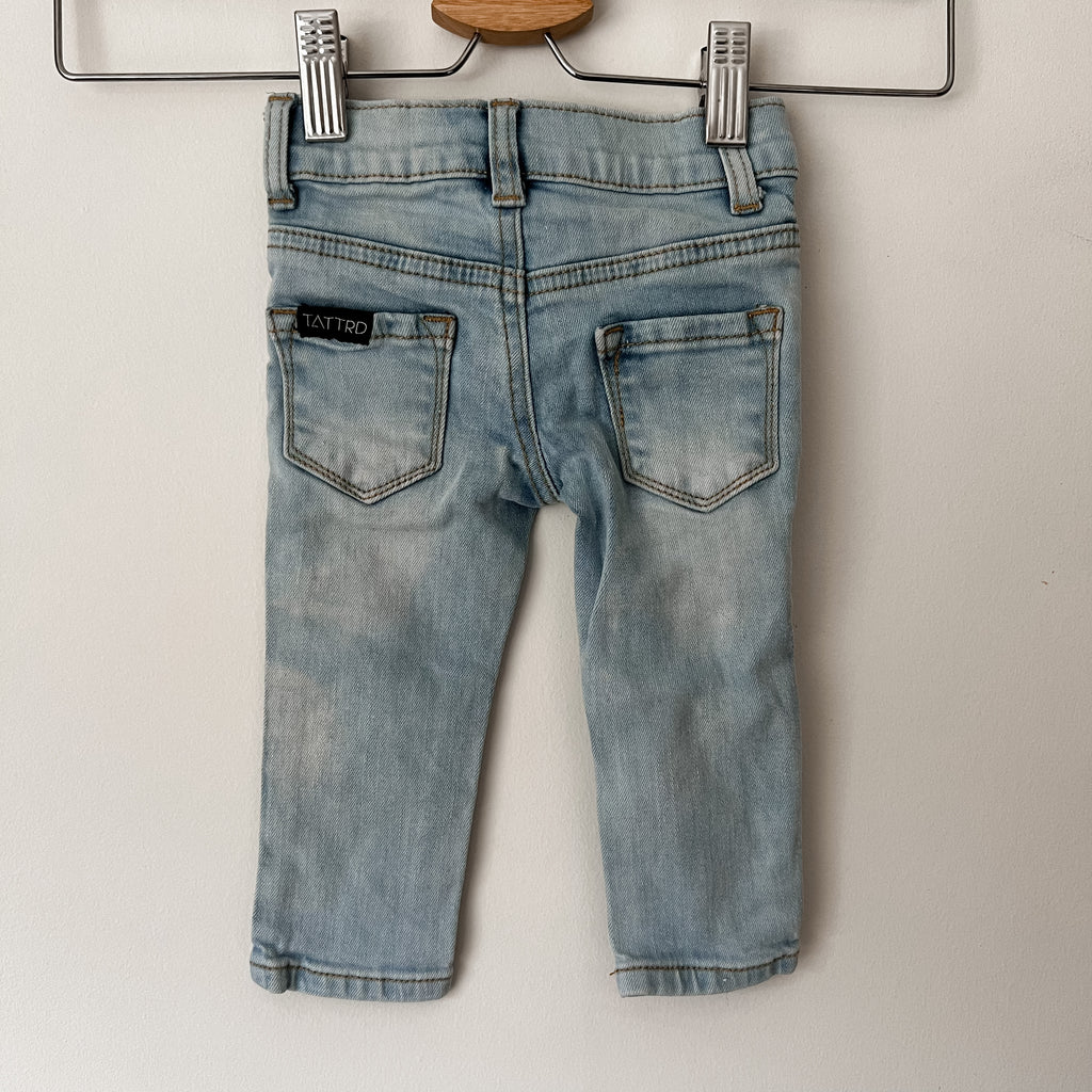 Slim fit stretch jean, TATTRD light wash jean with adjustable elastic waistband.