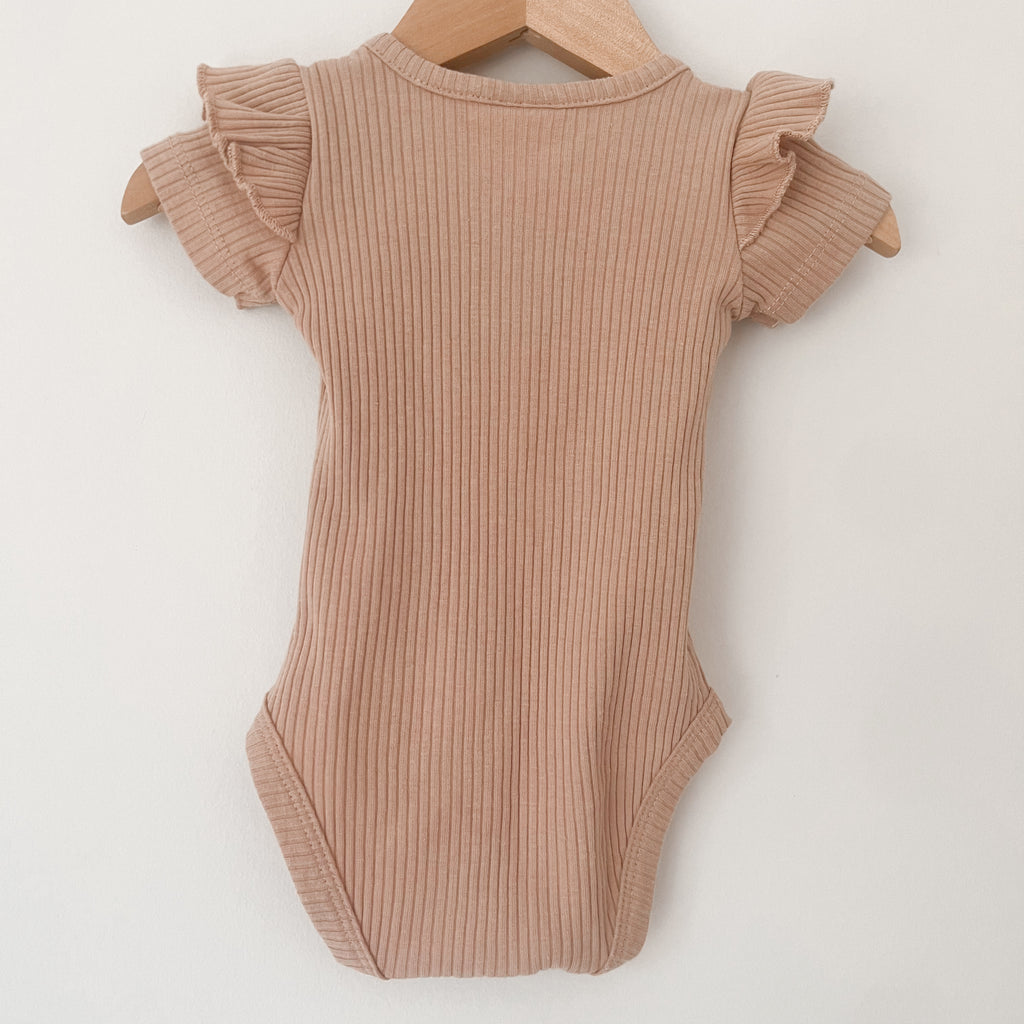 Ribbed ruffle sleeve bodysuit- Size 3M