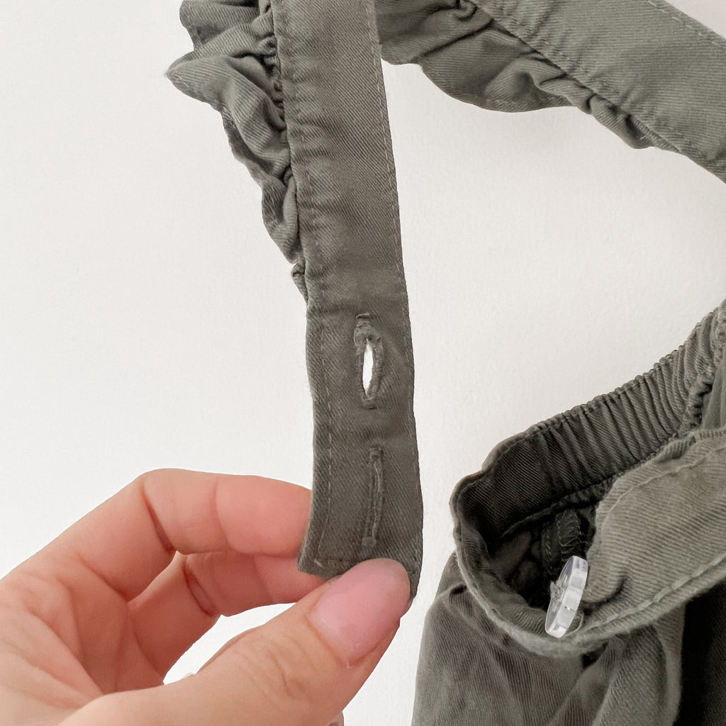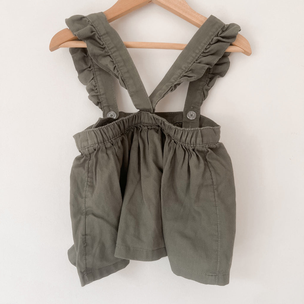 Size 12 months. Adorable skirt with adjustable ruffled suspenders and elastic waistband.