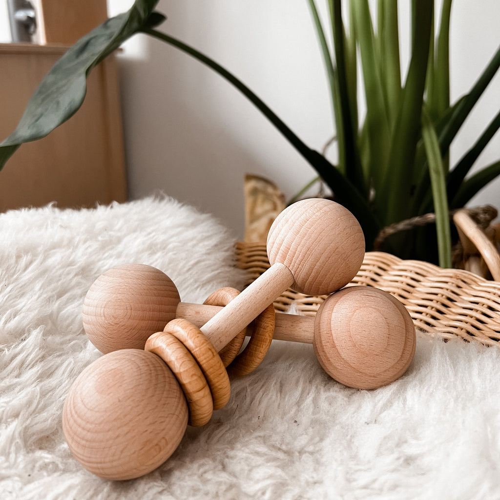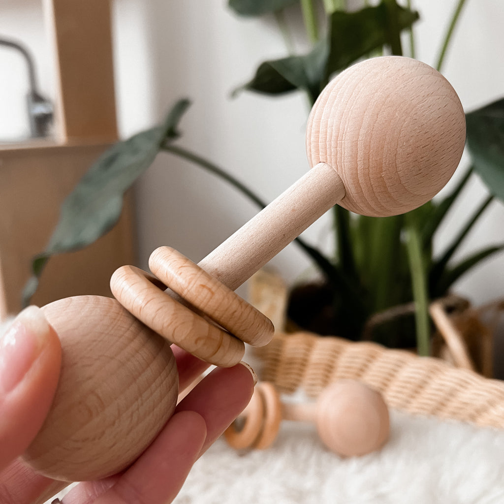 These beautiful wooden rattles are known for being a cherished keepsake gift, a darling addition to pregnancy announcements, and the perfect first toy for babies. These rattles are thoughtfully designed to encourage the development of sensory and motor skills, as well as teach babies cause and effect. Hand-crafted in Utah from domestically sourced Beachwood, these rattles are safe for babies and our planet alike.