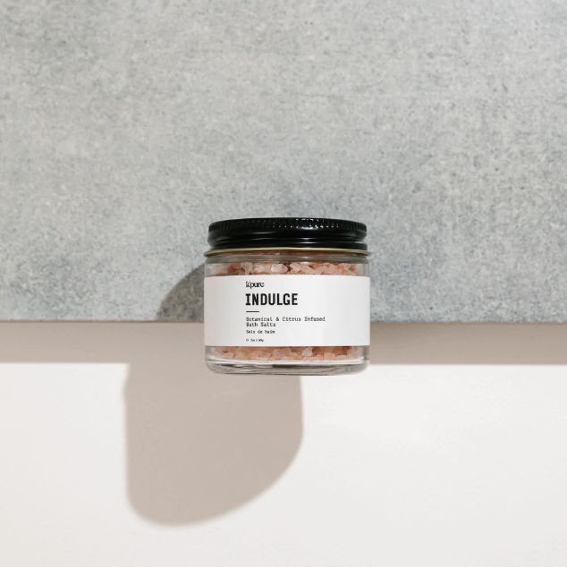 Indulge bath soak, with a blend of citrus and sage pure and organic essential oils with organic Hibiscus flower. Pink Himalayan salts to detoxify and improve hydration and mineral absorption.