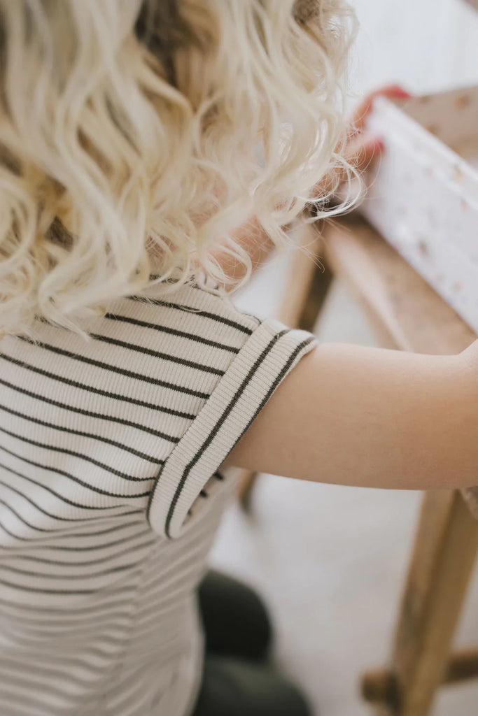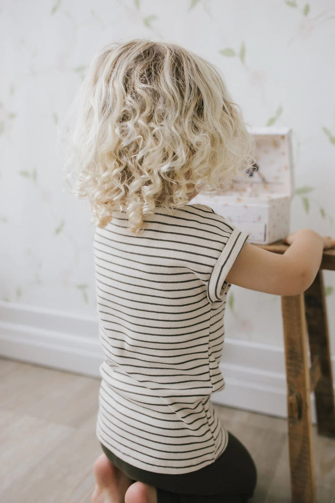 This super soft top features our much-loved fine rib detailing, cute stripes, and loose fitting sleeves for the ultimate comfort for your little one.