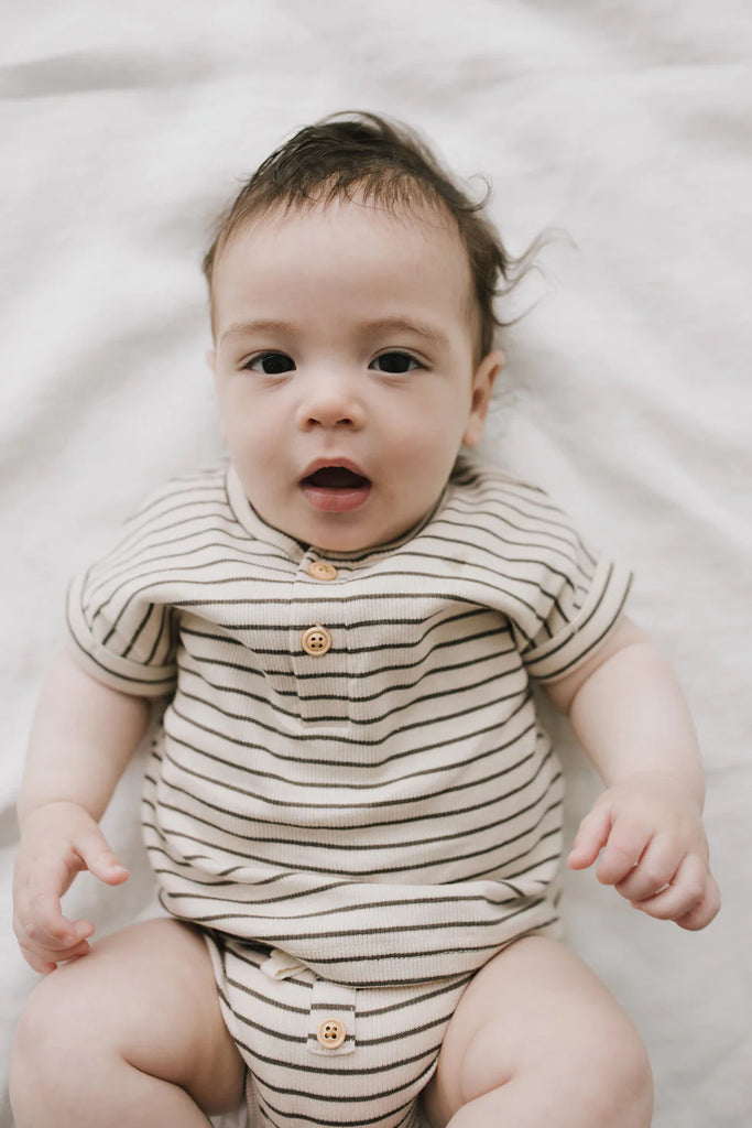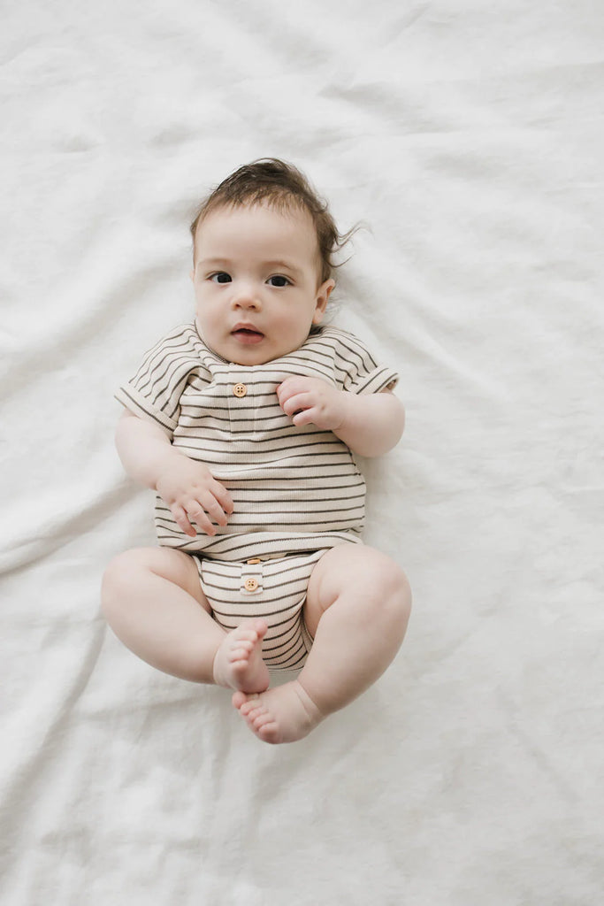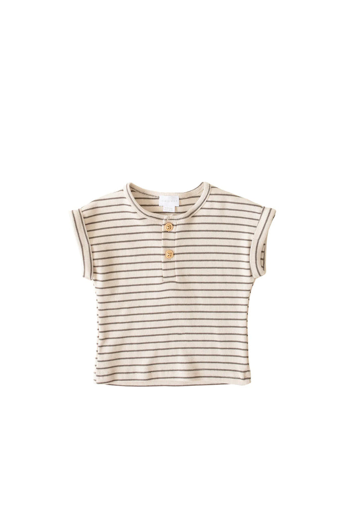Organic Cotton Fine Rib Parker Top - Oatmeal Mini Stripe