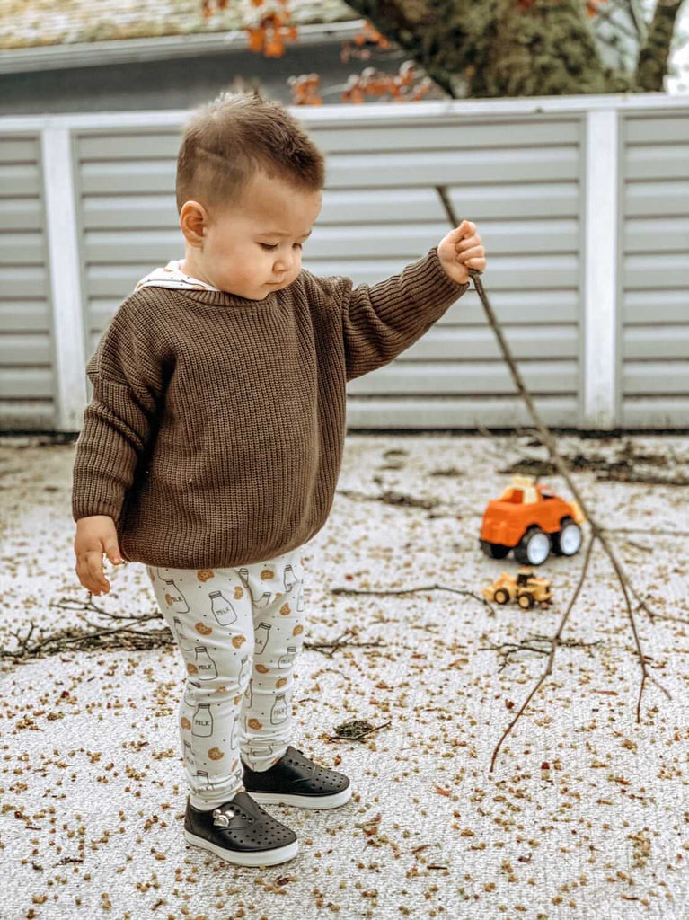 These organic cotton leggings provide a generous amount of stretch giving your child the freedom to move and play in comfort. Ankle cuffs prevent the pant from riding up and allow your child to grow into them by transitioning from a rolled cuff to an unrolled cuff! Features include a high rise with lots of room in the hips and a wide woven elastic waistband to help prevent it from digging in. Tapered towards the ankle. Even if cloth diapering, these have got little bums covered!