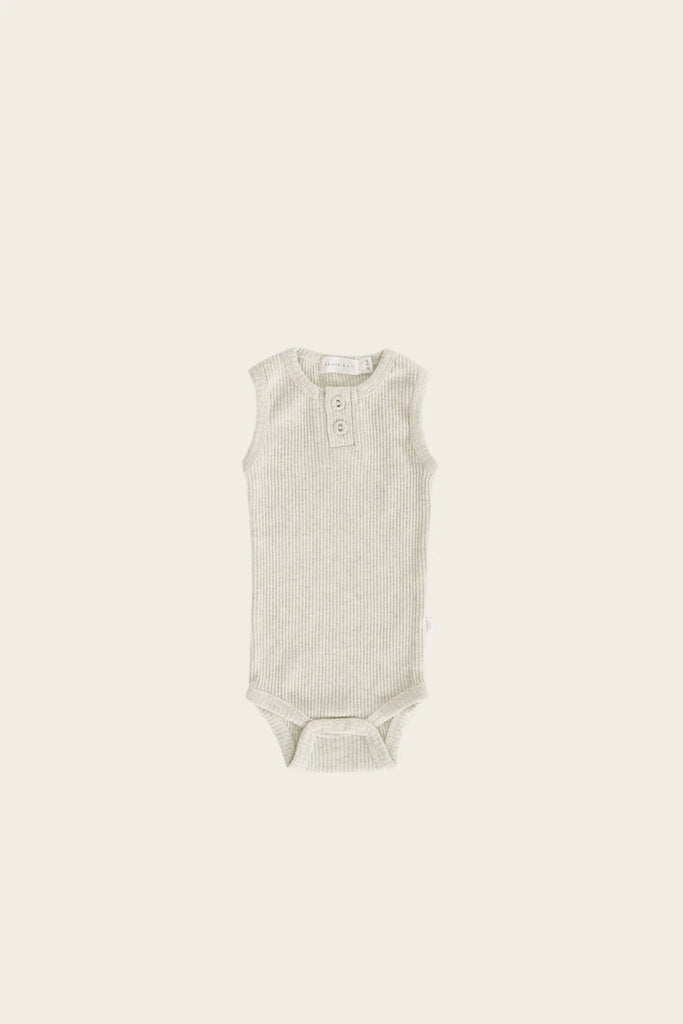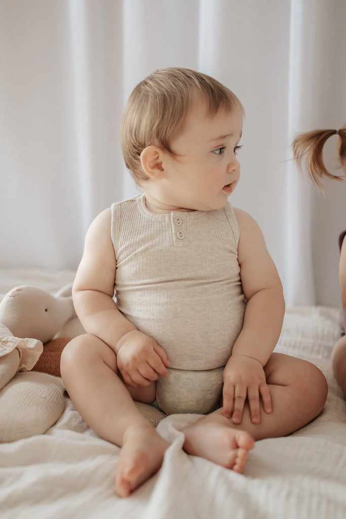 Organic Essential Singlet Bodysuit - Oatmeal Marle