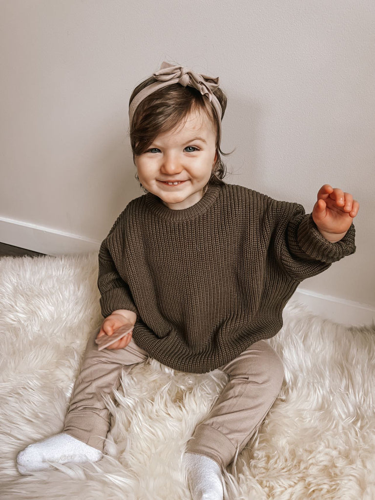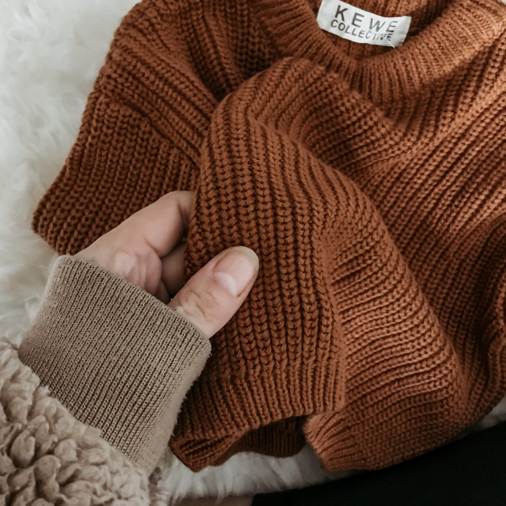 The only sweater you will want to reach for! This cotton knit is a soft, medium weight with dropped shoulders and ribbed edging. A loose, relaxed fit and an easy layering piece. Now available in 5 beautiful earth tones.