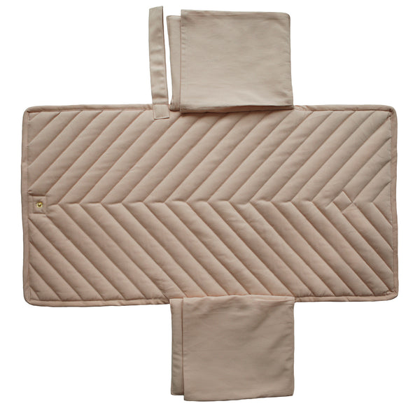 Make outings a breeze with this lightweight and compact portable changing pad that’s ideal for diaper changes on any surface. Made from 100% cotton, babies will feel extra cozy during diaper changes with the softest quilted material for added comfort. Its water repellent fabric keeps messes manageable, and its compact shape and convenient handle make it easy to bring anywhere.